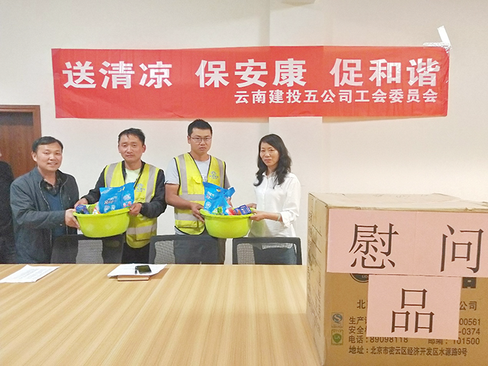 4月15日至17日,公司工會主席冷蕊公司代表公司領(lǐng)導(dǎo)班子率工會工作人員到昭通地區(qū)彝良縣發(fā)界、洛旺兩個易地扶貧搬遷項目和昭陽區(qū)第二人民醫(yī)院、太平片區(qū)省耕塘等項目,開展“送清涼 保安康 促和諧”活動,為職工發(fā)放了慰問品,并與職工進行座談。