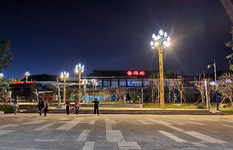 在沿線數(shù)個站點中,由五公司第二安裝直管部參建的普洱站前廣場是“一帶一路”玉磨鐵路國內(nèi)段建設(shè)規(guī)模最大,建設(shè)標(biāo)準(zhǔn)最高的站前廣場。項目如期完成65400米的電纜敷設(shè)工作,435臺配電箱、7臺干式變壓器、44臺高低壓柜體、4325盞燈安裝亮燈調(diào)試工作,由項目部點亮的一盞盞燈,真正照亮了每一位出行者腳下的路。