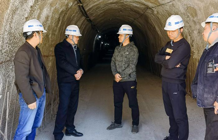 3月3日下午, 巧家縣副縣長陸開明到路橋四部承建的巧家縣城三水廠引水隧道改擴(kuò)建工程項目調(diào)研,巧家縣水務(wù)局副局長周興友陪同調(diào)研。