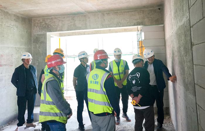 在項目一線,付雋蒼對現(xiàn)場進行了全面檢查,重點逐層檢查了目前處于二次結(jié)構(gòu)和抹灰施工中的1#棟A單元,在檢查過程中付雋蒼詳細了解項目情況“磚砌體頂部后塞口使用什么材料進行封堵,由誰負責施工”、“木模板施工多少錢一平米”、“樓梯間的吊頂是如何考慮施工的”。在聽取項目相關人員的匯報后,付雋蒼要求:一是項目部應加強團隊建設及管理,加強對各類合同的層層交底工作,確保每位施工人員對合同內(nèi)容有所了解;二是直管部要加強各在建項目的復工復產(chǎn)工作,確保合同工期;三是項目部要加強對現(xiàn)場各種材料的整和工作,以便后續(xù)的周轉(zhuǎn)、使用;四是現(xiàn)場工長要明確自己的職責,做好自己該做的事;五是現(xiàn)場任務書開具人員應知曉現(xiàn)場具體所做工作內(nèi)容,確保任務書內(nèi)容的準確性和真實性。