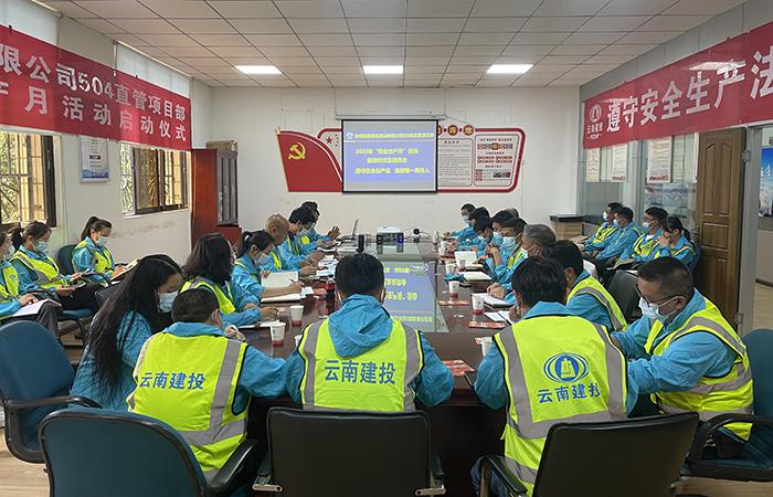 6月2日,五〇四直管部在直管部會議室舉辦以“遵守安全生產(chǎn)法 當好第一責任人”為主題的安全生產(chǎn)月活動啟動儀式,直管部班子成員、在昆項目經(jīng)理、二線管理人員及部分一線職工代表共計34人參會。