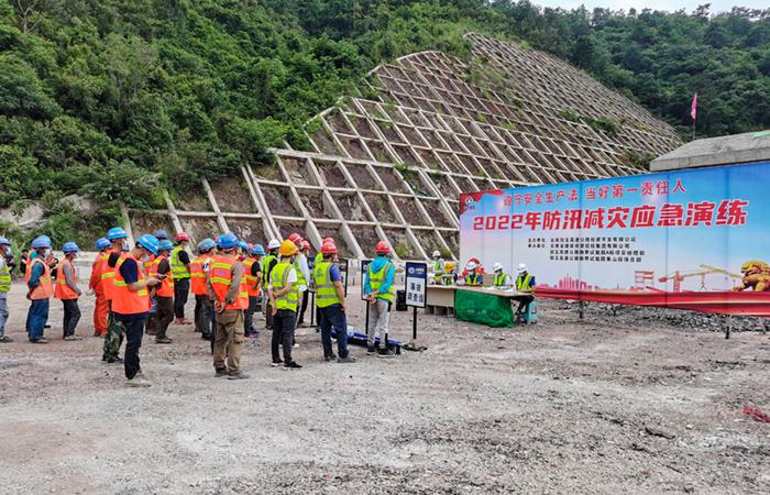 6月30日下午,彌玉高速象山試驗段項目組織全體管理人員,邀請業(yè)主及總包部,召集象山1號隧道作業(yè)班組,以象山1號隧道出口端邊坡旁空地作為演練場地開展2022年度防汛減災應急演練。