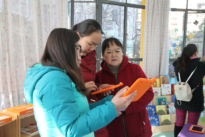 啟動(dòng)儀式后,家長(zhǎng)們參觀了加油少兒圖書館。