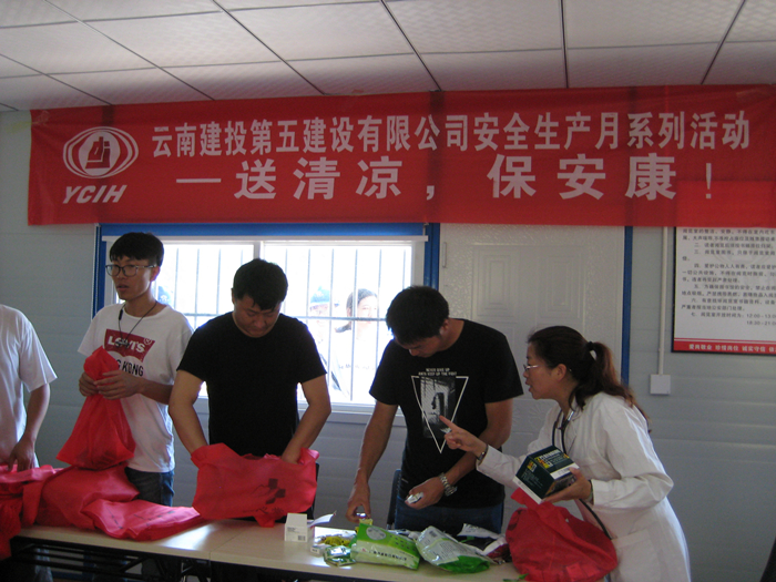 最后,公司工會(huì)要求項(xiàng)目部要做好職工的飲食衛(wèi)生和防暑降溫、疾病預(yù)防等工作,科學(xué)安排高溫期間的工作時(shí)間,加大對(duì)職工防暑降溫和中暑急救知識(shí)的宣傳教育,切實(shí)關(guān)心職工及農(nóng)民工的身心健康。