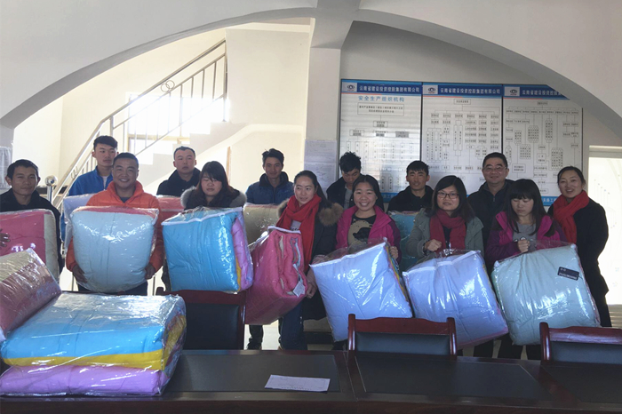 技術(shù)支持: 方森科技 2016年12月,云南已進(jìn)入冬季,路橋一部嚴(yán)格按照公司文件規(guī)定及時(shí)籌措資金開(kāi)展“關(guān)愛(ài)員工、冬日送溫暖”活動(dòng)。12月30日,直管部書(shū)記將一床床被子送到一線職工手中,送去溫暖的同時(shí)給一線職工送去了新年的祝福,并囑咐項(xiàng)目部做好冬季施工技術(shù)措施確保工程質(zhì)量。