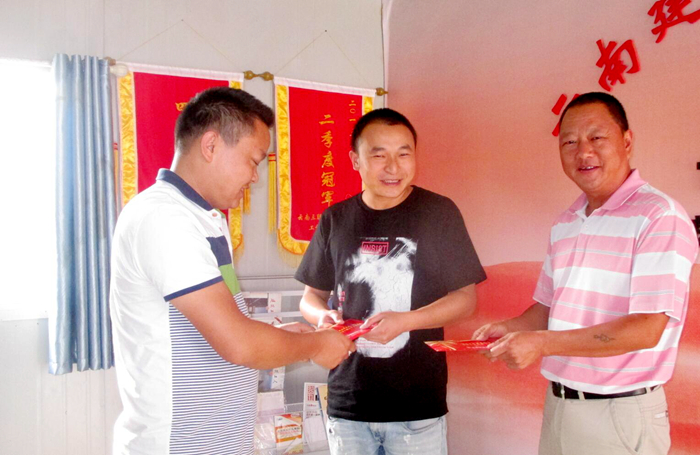 技術支持: 方森科技 9月13日上午,通過微信轉(zhuǎn)賬的方式,身在個舊項目部的困難職工王顯厚首先領到第一筆中秋節(jié)困難職工慰問金。午飯后,五〇七直管項目部黨支部書記王俊安帶著問候直奔五里商務中心項目,把慰問金親自交到項目機械管理員李雪波和預算員施文兩位困難職工的手里。