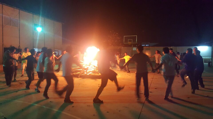 夜幕降臨,伴隨著激動的心情火把節(jié)點(diǎn)火儀式開始了。天威云變項(xiàng)目部甲方、監(jiān)理及五〇八直管部天威云變項(xiàng)目部管理人員、海源財富中心項(xiàng)目部管理人員、二線職工共同舉起象征希望、幸福、健康的火把,點(diǎn)燃了項(xiàng)目球場中央的篝火。升騰的火焰將活動推向高潮,大家圍繞在篝火旁,手拉手跳起熱情奔放的舞蹈《七月火把節(jié)》,現(xiàn)場一片歡騰。
