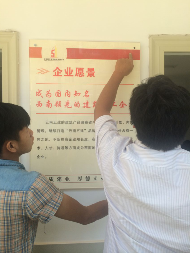 宣傳標(biāo)牌內(nèi)容有企業(yè)文化理念、“五講”教育、經(jīng)營(yíng)管理理念、“五位一體”管理理念、黨風(fēng)廉政思想、“愛崗敬業(yè)、珍惜崗位、誠(chéng)實(shí)守信、依法經(jīng)營(yíng)”企業(yè)核心價(jià)值、公司獲魯班獎(jiǎng)項(xiàng)目展示以及各個(gè)科室崗位職責(zé)。所有標(biāo)牌都根據(jù)公司統(tǒng)一標(biāo)準(zhǔn)制作,整齊地懸掛在直管部辦公室樓梯間、走廊上及各科室顯眼位置。同事們都說(shuō):“標(biāo)牌安裝起來(lái),整個(gè)直管部的企業(yè)文化氛圍更濃了,更漂亮了!”