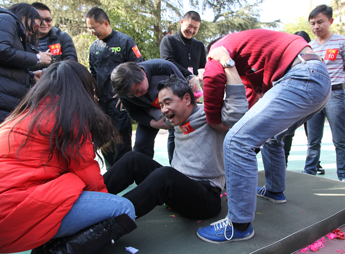 大家分成9組,由公司領(lǐng)導(dǎo)擔(dān)任組長(zhǎng),帶領(lǐng)大家一起完成了“買菜”“跳大繩”“三人兩足接力”“合力吹氣球”“歡樂大合照”等游戲?!百I菜”游戲中大家手拉手圍成圈聚精匯神地等待主持人發(fā)出指令;在“跳大繩”中,在繩頭兩端的小伙伴,拼盡全力只為跳得更高;“三人兩足接力”考驗(yàn)的是大家的默契度和協(xié)調(diào)性,“一二”“一二”……有的隊(duì)健步如飛;讓人小小尷尬的“合力吹氣球”卻成了本場(chǎng)的亮點(diǎn),大家放下工作中嚴(yán)肅的樣子,激烈又搞笑的游戲,引得各隊(duì)駐足觀看,笑聲不斷;隨著“一二三”的指令,每個(gè)小組一起面帶笑容地跳躍起來(lái),壓軸的“歡樂大合照”記錄下了各隊(duì)的精彩瞬間。