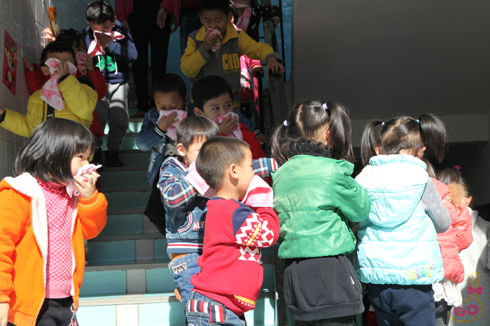 小寶貝們根據(jù)班級分開兩路縮短時(shí)間