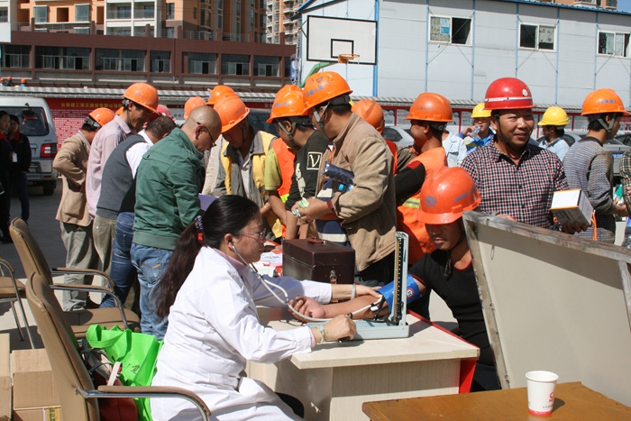 為現(xiàn)場職工進行免費體檢和日常疾病防治咨詢