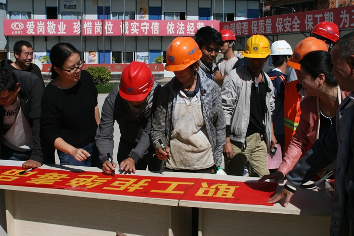 現(xiàn)場人員在“職工拒絕毒品‘零計劃’”的橫幅上紛紛簽名