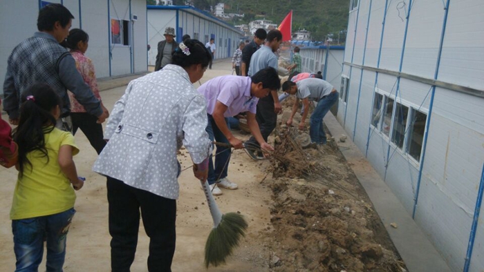 8月29日晚,接到云南建工抗震救災(zāi)指揮部通知,為確保9月1日龍泉中學(xué)順利開(kāi)學(xué),實(shí)現(xiàn)升國(guó)旗、上第一堂課、吃第一餐飯的要求。第九直管項(xiàng)目部2012年昭通保障房項(xiàng)目部迅速組織的30名突擊隊(duì)員自備干糧,帶上塑料袋、掃帚、抹布、拖把以及兩輛垃圾清運(yùn)車(chē)等清理物資,于2014年8月30日上午8時(shí)準(zhǔn)時(shí)到達(dá)龍泉中學(xué)報(bào)到。