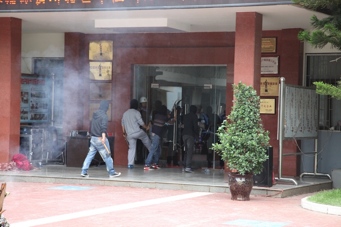 暴恐分子猛擊辦公樓大門