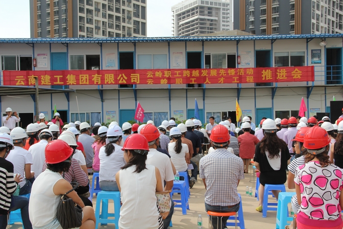 2014年6月4日,集團公司工會在云南工程建設總承包公司潤城四區(qū)18號A1—9地塊召開“一活動一工程”現(xiàn)場推進會。五公司被定為集團工會首批“一活動一工程”示范單位,并接受授牌。工會主席史呈森在推進會上做了交流發(fā)言。