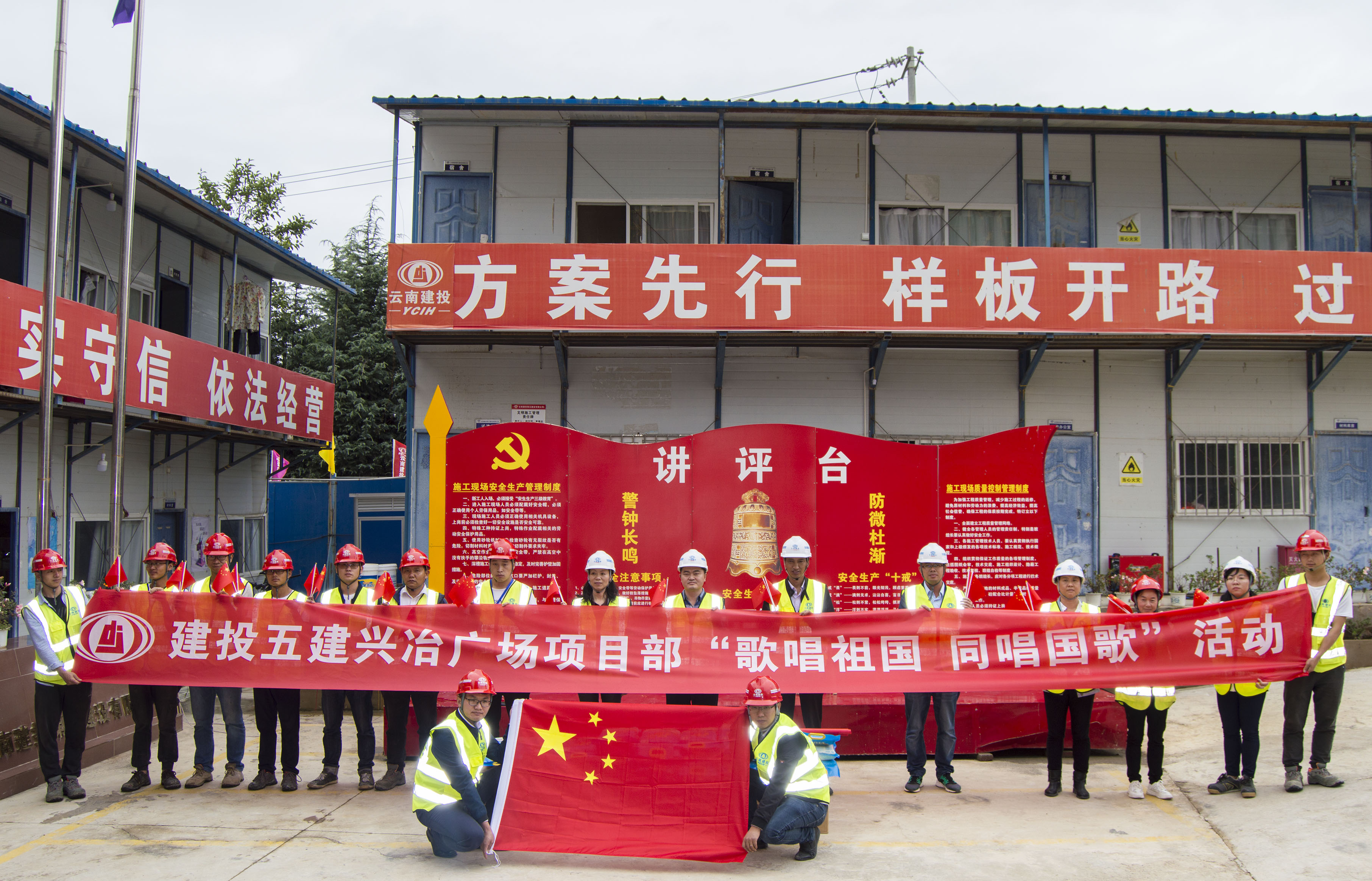 公司領導帶領項目部管理人員同唱國歌 歌唱祖國