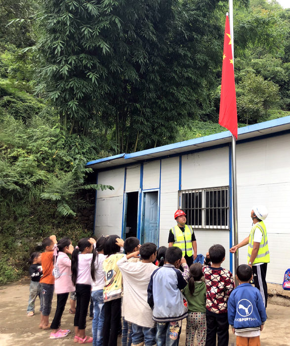 隨后,項(xiàng)目部成員和孩子們一起舉行了升旗儀式,嶄新的國(guó)旗隨著國(guó)歌緩緩上升。路橋四部傳遞愛心,延續(xù)希望一直在行動(dòng),愿溫暖播種在他們心間。盼祖國(guó)的未來開心快樂,祝愿他們健康成長(zhǎng)!