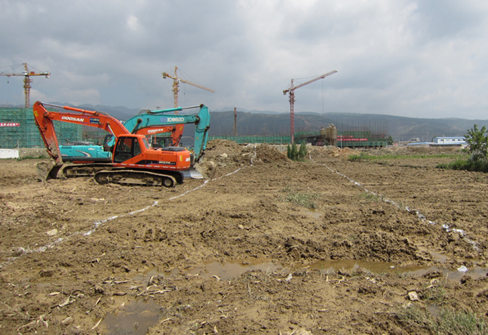 項目部成立后,先后測出1至5號地塊方格網,積極組織機械設備和人員入場,推進幾個地塊的場地平整工作。