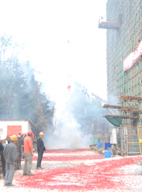 在鞭炮聲中昆一中主體結(jié)構(gòu)實(shí)現(xiàn)封頂