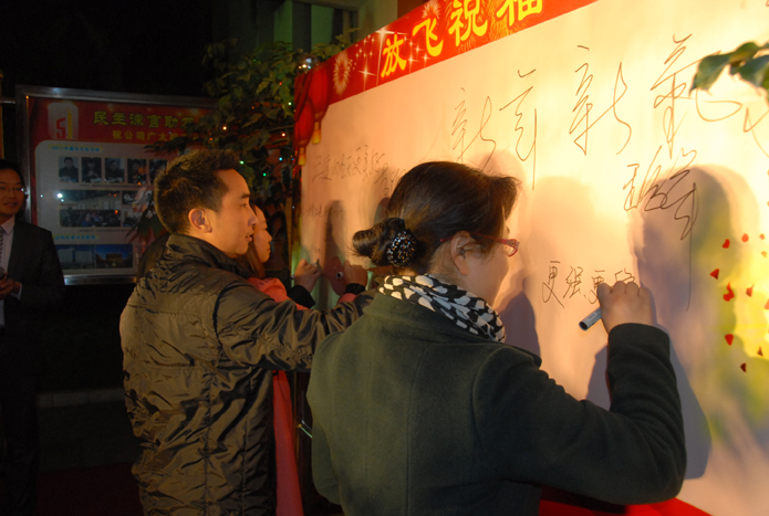 晚會前,公司董事長楊福和等領(lǐng)導班子成員與400余名干部職工家屬一同寫下各人對公司的美好祝愿,并一起觀看焰火。