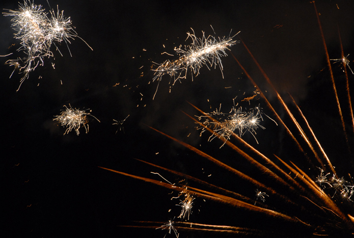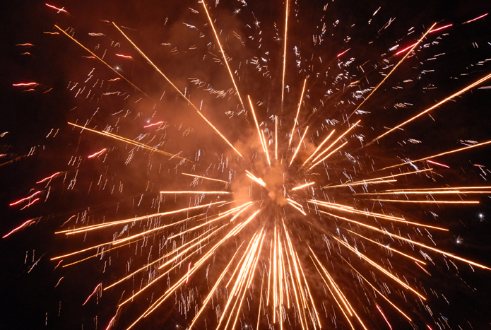 燦爛的焰火映紅五建的夜空
