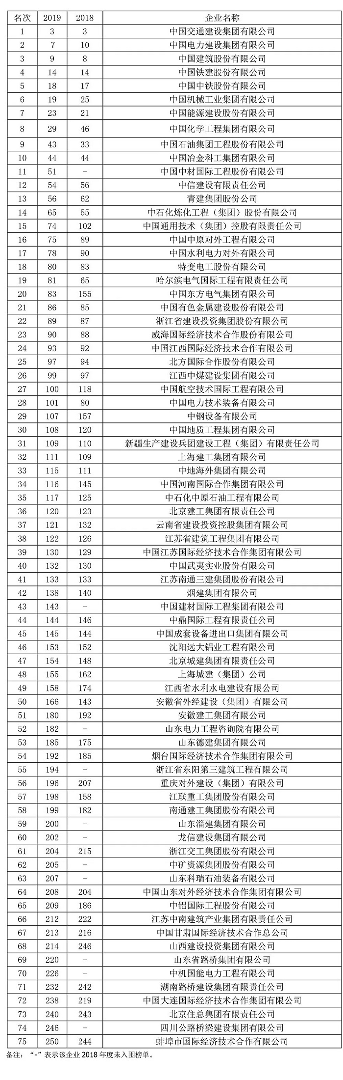 技術(shù)支持: 方森科技近日,2019年度美國(guó)《工程新聞紀(jì)錄(ENR)》“全球最大250家國(guó)際承包商”榜單發(fā)布,集團(tuán)再次入圍,名列121位,比上年提升11位,位列進(jìn)入榜單的中國(guó)企業(yè)第35名。至此,集團(tuán)已連續(xù)10年入選ENR國(guó)際承包商250強(qiáng)企業(yè)。
