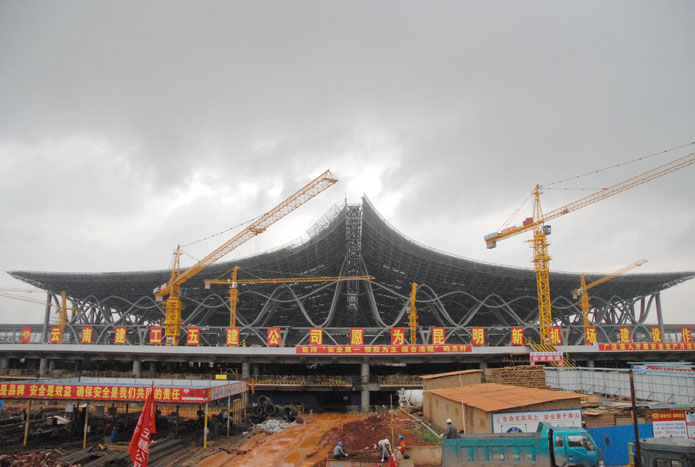 隨著昆明新機(jī)場(chǎng)航站樓屋頂鋼網(wǎng)架金屬屋面的封頂,一只振翅欲飛的大鵬已初具雛形。在大鵬腳下默默奮戰(zhàn)了幾百個(gè)日夜的公司新機(jī)場(chǎng)直管部,也即將迎來(lái)一場(chǎng)決定性戰(zhàn)役。2010年6月25日,新機(jī)場(chǎng)停車樓及高架橋工程決戰(zhàn)190天誓師動(dòng)員大會(huì)在公司新機(jī)場(chǎng)直管部會(huì)議室召開。