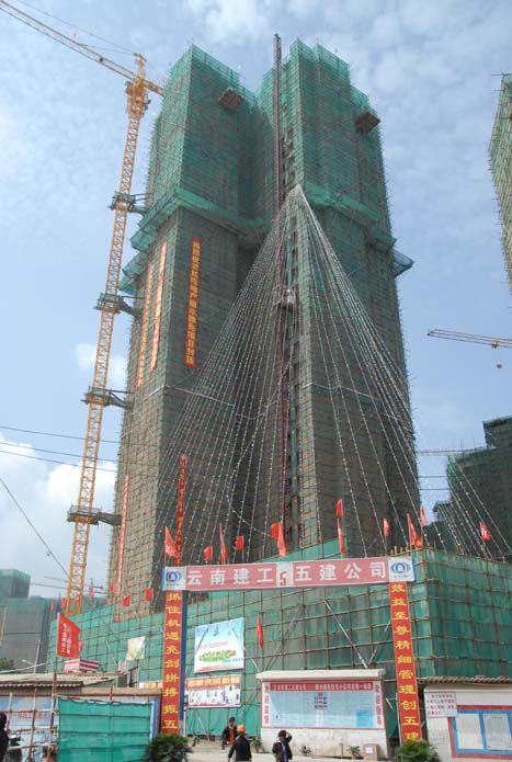 紅塔集團(tuán)麗水雅苑住宅小區(qū)項(xiàng)目于2009年5月29日開工,占地面積223畝,總建筑面積333673M2,是紅塔集團(tuán)的重要民生工程,共有六家施工單位承建該項(xiàng)目。其中,五建公司承建了一標(biāo)段(1棟和14棟),建筑面積45280.4 M2,住宅為框支剪力墻結(jié)構(gòu),群樓為框架結(jié)構(gòu),2009年6月15日開工。