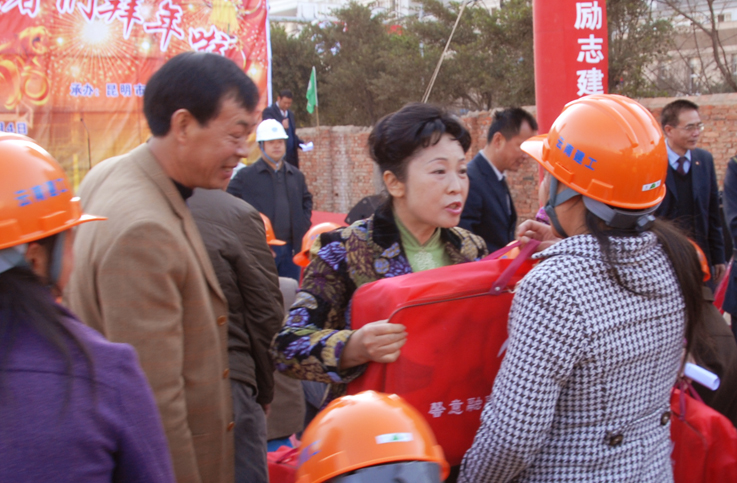 五建公司紀委書記謝海建、工會主席李興奎等和楊主席一起向職工、民工們祝賀新春。