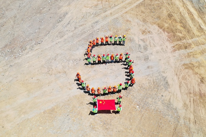 在無(wú)人機(jī)的拍攝下,項(xiàng)目部全體管理人員及部分勞務(wù)班組成員共41人圍成一個(gè)“5”字,“化身”國(guó)旗上的五顆星,意在以項(xiàng)目部小家庭的團(tuán)結(jié)協(xié)作來(lái)表現(xiàn)祖國(guó)大家庭文明和諧的精神風(fēng)貌。大家還手拉手以國(guó)旗為中心圍成一個(gè)同心圓,喊著“我愛(ài)祖國(guó),同唱國(guó)歌;天生鐵軍,戰(zhàn)無(wú)不勝”的口號(hào)。在洪亮的《國(guó)歌》合唱聲中,活動(dòng)圓滿(mǎn)結(jié)束。