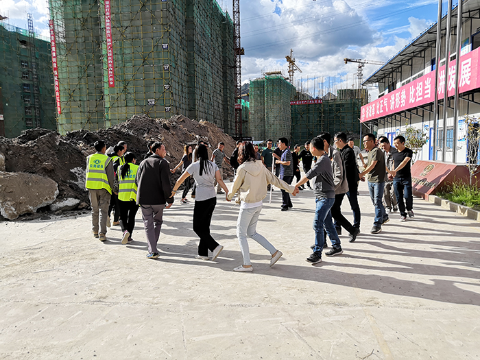 節(jié)日當天,直管部組織所有人員進行 “十人九足”、“過河拆橋”、“暈頭轉向”等小游戲,參與人員爭分奪秒的沖刺著,旁邊的人員不停的喊著“加油”,大家時不時被游戲人員的奇怪百態(tài)逗得哈哈大笑,大家的歡笑聲充滿整個工地,直管部領導班子為游戲參與者頒發(fā)獎品。