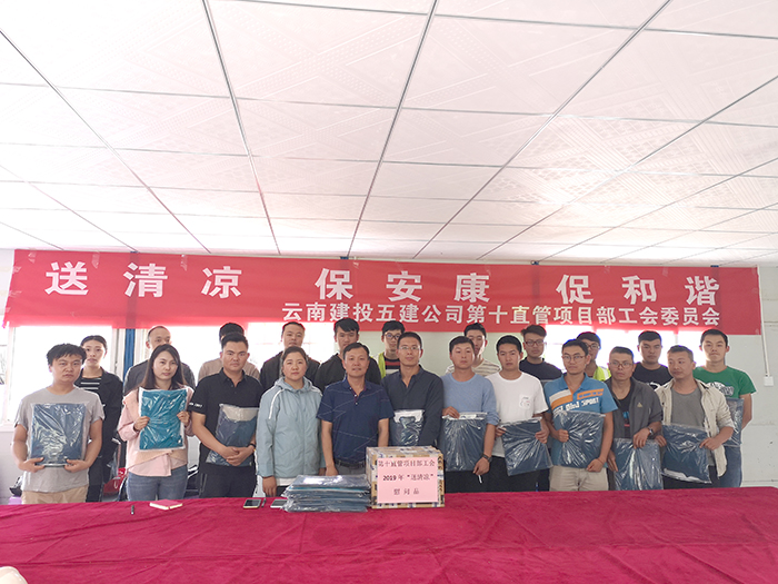 正值高溫時節(jié),氣溫日益炎熱,結(jié)合公司2019年“送清涼 保安康 促和諧”活動主題,5月7日-13日期間,第十直管部工會深入施工一線,慰問長期奮戰(zhàn)在施工一線的職工,為他們送去了站立式旋轉(zhuǎn)電風(fēng)扇和防曬服,給高溫酷暑的一線帶來些許涼意。