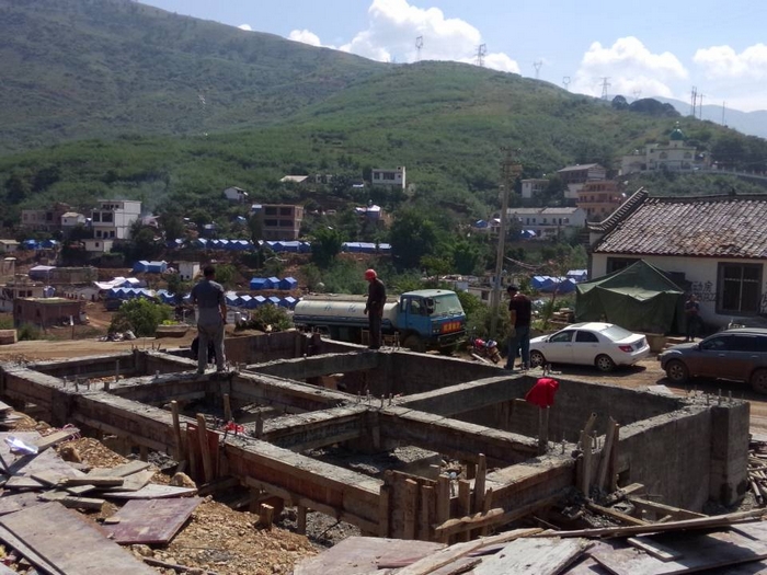 直九部:魯?shù)辇堫^山災(zāi)后重建樣板房基礎(chǔ)澆筑完成