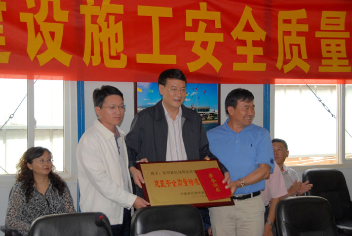 7月14日,省、市、區(qū)建設(shè)行政主管部門(mén),安全生產(chǎn)監(jiān)督部門(mén)和昆明新機(jī)場(chǎng)建設(shè)指揮部的領(lǐng)導(dǎo)和專家蒞臨五有限公司新機(jī)場(chǎng)項(xiàng)目部檢查和指導(dǎo)工作,在參觀了停車樓工程現(xiàn)場(chǎng)施工情況后,召開(kāi)昆明新機(jī)場(chǎng)建設(shè)施工安全質(zhì)量標(biāo)準(zhǔn)化工作現(xiàn)場(chǎng)會(huì)。會(huì)上,省建設(shè)廳副廳長(zhǎng)郭五代向五公司頒發(fā)了獎(jiǎng)牌和證書(shū)。 會(huì)議首先由五公司副總經(jīng)理、新機(jī)場(chǎng)直管部經(jīng)理王磊邦向與會(huì)領(lǐng)導(dǎo)和專家匯報(bào)了新機(jī)場(chǎng)航站區(qū)...