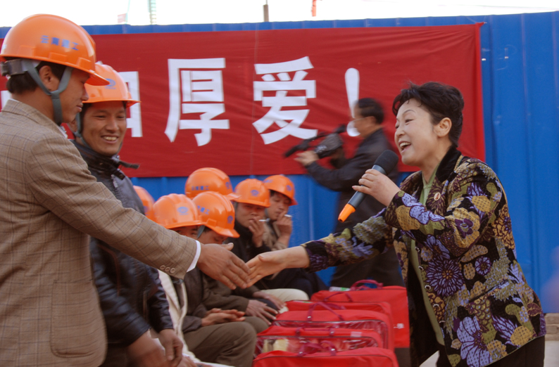 2月4日上午,受昆明市委、市政府委托,昆明市總工會主席楊麗等領(lǐng)導(dǎo)同志率團到云南建工第五建設(shè)有限公司昆明工人文化宮建設(shè)工地,給包括農(nóng)民工在內(nèi)的新昆明建設(shè)者拜年,給建設(shè)者送來新春的祝福和溫暖的禮品。楊麗主席和工會干部以及昆明市楓葉職工藝術(shù)團的演員們分別獻上精彩的歌舞。 五建公司紀委書記謝海建、工會主...