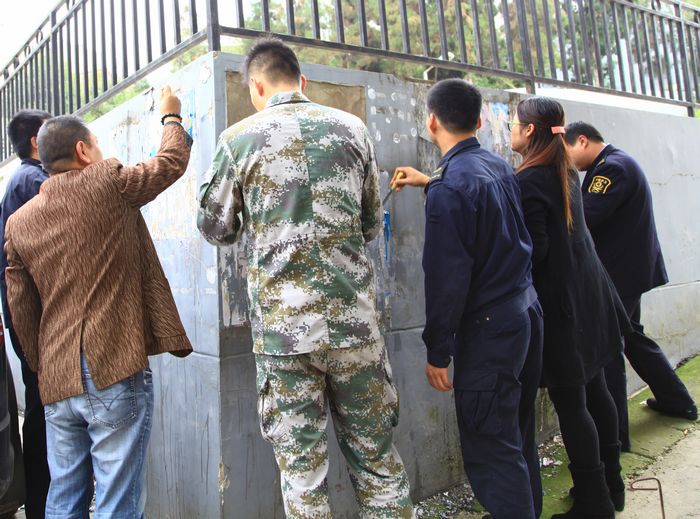 10月16、17日物業(yè)公司、保衛(wèi)部共10余名志愿者攜帶小鏟子、掃帚、撮箕、噴壺前往小團山生活區(qū)住房,清除“牛皮癬”。 公司小團山生活區(qū)由于住房緊湊、人口集中,一直以來都是“城市牛皮癬”的最愛。大量的“牛皮癬”粘貼時間長、粘貼量多、粘貼區(qū)域廣,紙張牢牢粘在墻上,清理起來比較困難。兩天時間,志愿者們共清除小團山生活區(qū)20余面墻...