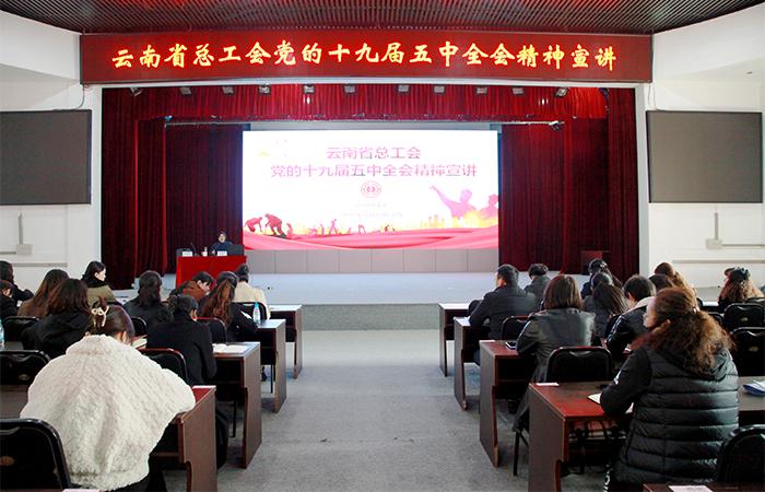 12月18日下午,云南省總工會(huì)在公司宣講黨的十九屆五中全會(huì)精神及習(xí)近平總書記在全國(guó)勞動(dòng)模范和先進(jìn)工作者表彰大會(huì)上的重要講話精神。集團(tuán)工會(huì)副主席趙艷波主持宣講活動(dòng),公司工會(huì)主席冷蕊,機(jī)關(guān)各職能部門代表及各直管部、實(shí)體工會(huì)主席帶隊(duì)共96人參加宣講?;顒?dòng)邀請(qǐng)了云南省工青婦干部學(xué)校社會(huì)學(xué)副教授、黨政辦公室副主任劉瑞華老師為公司做黨的十九屆五中全會(huì)精神專題輔導(dǎo)和宣講,還邀請(qǐng)了全國(guó)勞模李永山、云南省勞模魏東作…