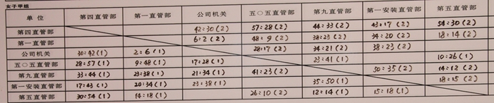 五〇四VS直六——26:4 五〇四VS市政——21:12 直三VS市政——14:10
