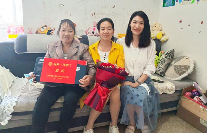 為感謝奮戰(zhàn)在海外項目一線的職工及家屬,4月26日,直六工會主席王倩代表公司、直管部走訪慰問海外職工家屬,為他們送去吸塵器、鮮花等慰問品。受新冠肺炎疫情影響,第六直管項目部援老撾鐵道職業(yè)技術(shù)學(xué)院項目、老撾萬萬高速項目、柬埔寨18007項目的職工們無法按時休假,不能回來與家人團(tuán)聚,有的職工已經(jīng)接近兩年沒有回家了,一直堅守在工作崗位上。在援老撾鐵道職業(yè)技術(shù)學(xué)院項目職工徐章銳和老撾萬萬高速二工區(qū)項目陸禮家…